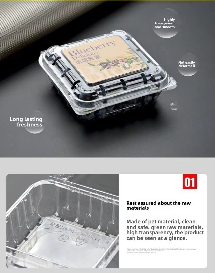 Disposable Clear 125g Blueberry Packaging Boxes Clamshell Blister Fruit Food Container Blueberry Container
